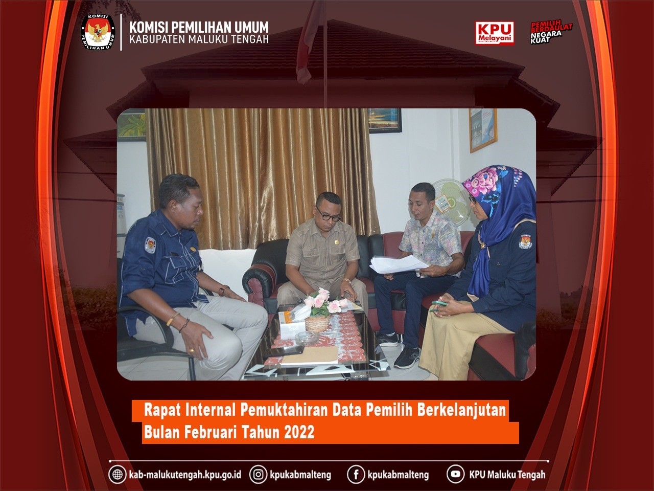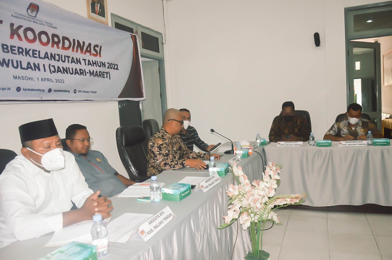 Masohi. (1/4) KPU Kabupaten Maluku Tengah telah melaksanakan Rapat Koordinasi Daftar Pemilih Berkelanjutan triwulan pertama bulan Januari - Maret 2022 di tingkat Kabupaten Maluku Tengah. Berdasarkan Ketentuan Peraturan Komisi Pemilihan Umum Republik Indonesia nomor 6 Tahun 2021 tentang pemuktahiran data pemilih berkelanjutan tanggal 12 November 2021, hasil Rapat Koordinasi yang dilakukan KPU Kabupaten Maluku Tengah menghasilkan hal sebagai berikut: