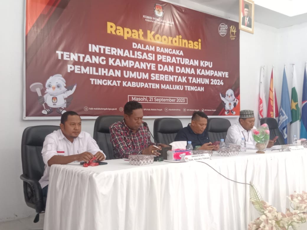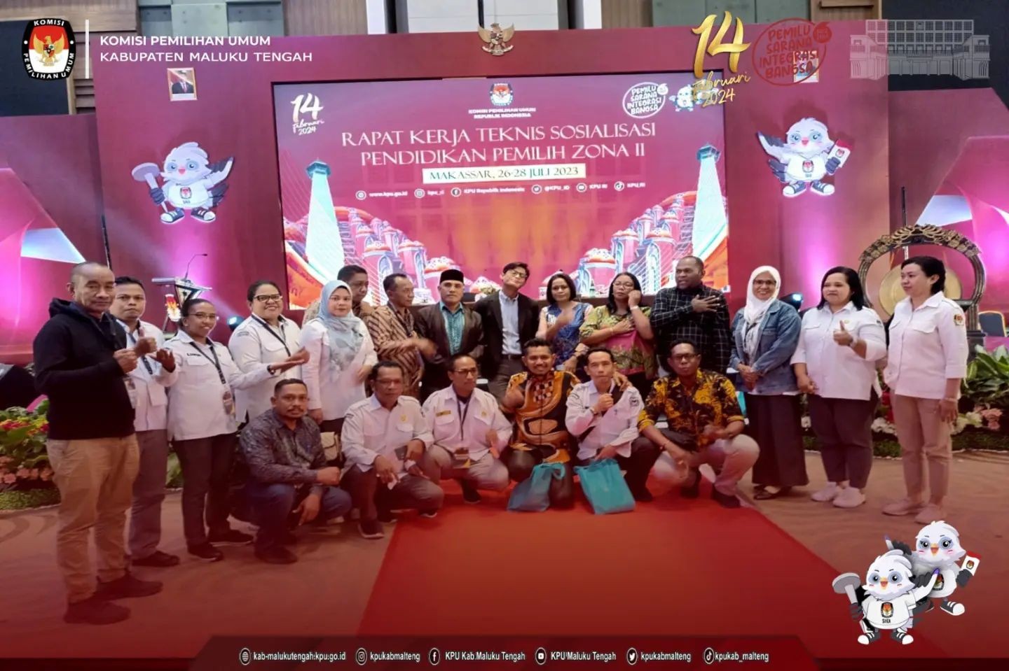 Komisi Pemilihan Umum (KPU) Kembali menggelar Rapat Kerja Teknis Sosialisasi Pendidikan Pemilih Zona II, di Kota Makasar Provinsi Sulawesi Selatan, 26 Juli 2023. Kegiatan hingga tiga hari tersebut diikuti 378 peserta dari 15 KPU Provinsi dan 173 KPU Kabupaten/Kota.Hadir pada kegiatan ini Anggota KPU Kabupaten Maluku Tengah Harold Pattiasina didampingi Kepala Sub Bagian Teknis, Partisipasi Masyarakat dan Hubungan Masyarakat Muslima Tatuhey.